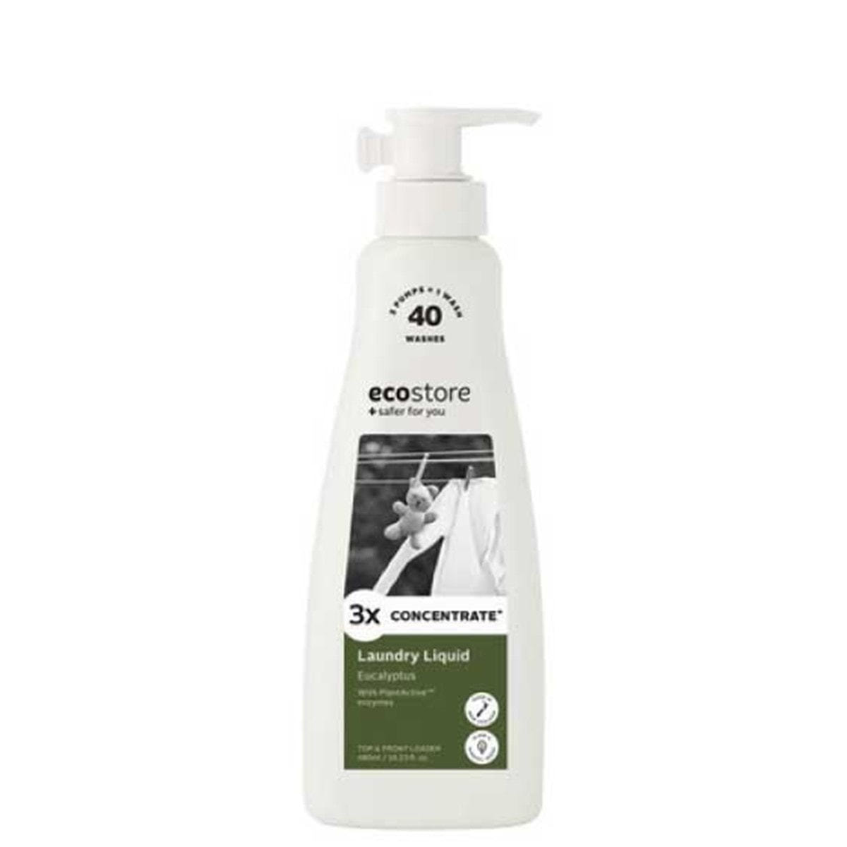 エコストア ランドリーコンセントレートは3プッシュで1回分の濃縮タイプ。