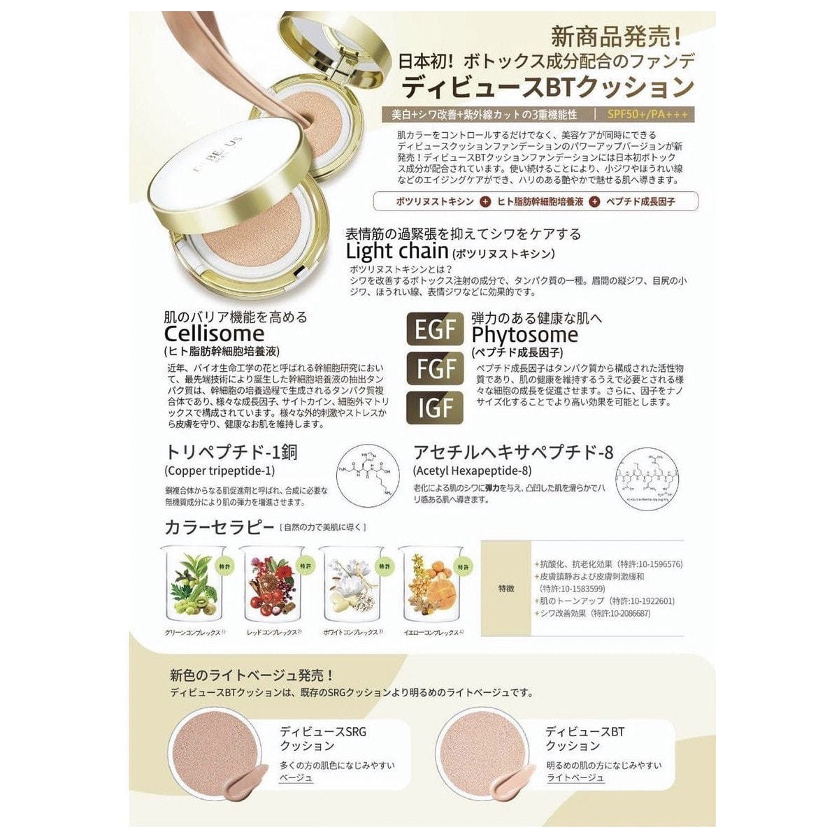 ディビュースBTクッションには、日本初ボトックス成分が配合されています。