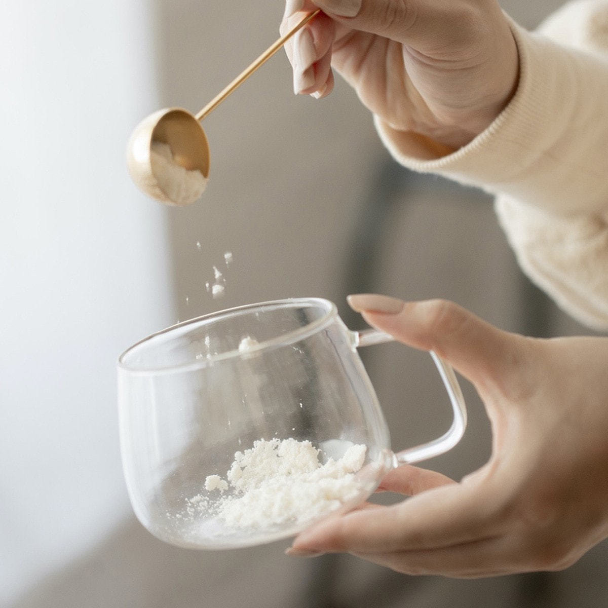 大さじ一杯の杏仁粉に、120cc程度のお湯または温かい牛乳や豆乳などを注ぎ、よくかき回してお飲みください。