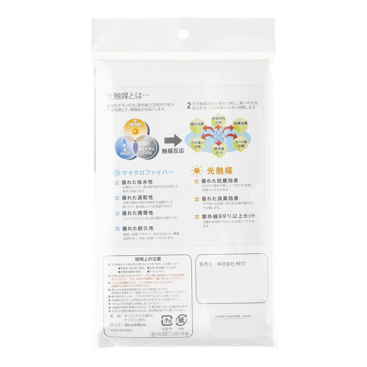 「エクセレントタオル」は、抜群の吸水性をもつマイクロファイバーに光触媒加工を施したタオルです。