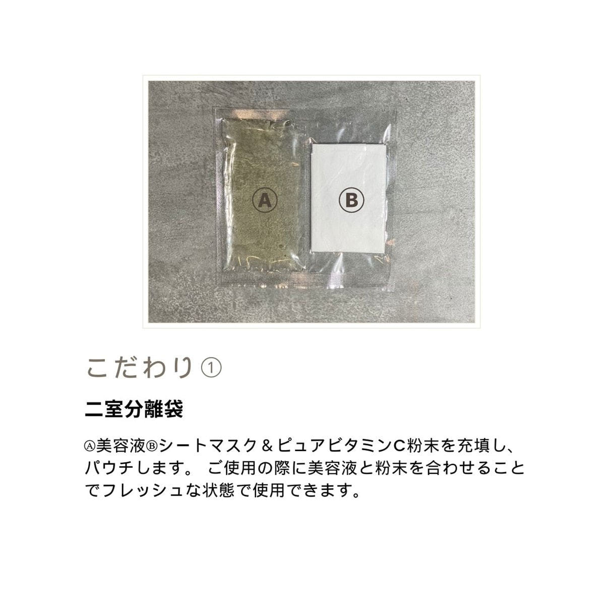 美容液とフェイスシートを分けた2室分離袋となっております。